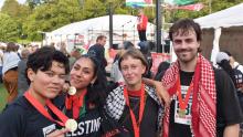 – En av anledningarna till att det är så många som springer i år är att Fredsloppet vågar ta ställning för fred, för Palestina och mot folkmord. Det har inte övriga idrottsvärlden gjort, säger Jonatan Fahlén från Proletären FF, som är huvudarrangör till loppet.
