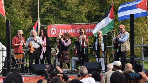 Proletären hade ett eget tält på plats och genomförde under dagen tre panelsamtal. På dagordningen: sexköpslagen, riksdagsvalet 2026 och Palestinarörelsen i Sverige.